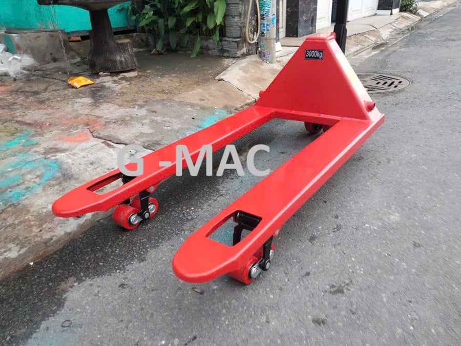 Xe nâng tay thấp kéo pallet 3000kg là dòng thiết bị nâng hạ cơ bản, sử dụng lực tay để di chuyển và nâng hạ hàng hóa đặt trên pallet. Với tải trọng tiêu chuẩn 3 tấn, xe phù hợp để vận chuyển đa dạng loại hàng hóa có trọng lượng trung bình đến nặng, đặc biệt là trong không gian hạn chế như kho chứa, xe container, hoặc nhà xưởng. Thông số kỹ thuật Xe nâng tay thấp kéo pallet 3000kg
