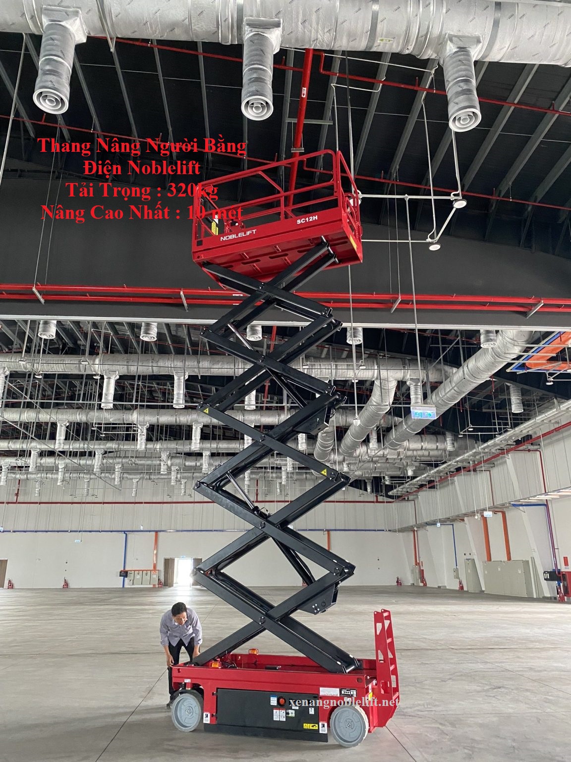 Thang nâng người bằng điện cao 12 mét Noblelift SC14H Chiều cao làm việc 12 mét, tải trọng nâng 320kg, phù hợp cho các công việc bảo trì và lắp đặt trong nhà xưởng và tòa nhà cao tầng.Thiết bị nâng hạ tự hành dạng cắt kéo, được thiết kế để nâng người và dụng cụ làm việc lên độ cao tối đa 12 mét, với chiều cao sàn nâng là 12 mét, thiết bị cho phép làm việc an toàn và hiệu quả trên cao.