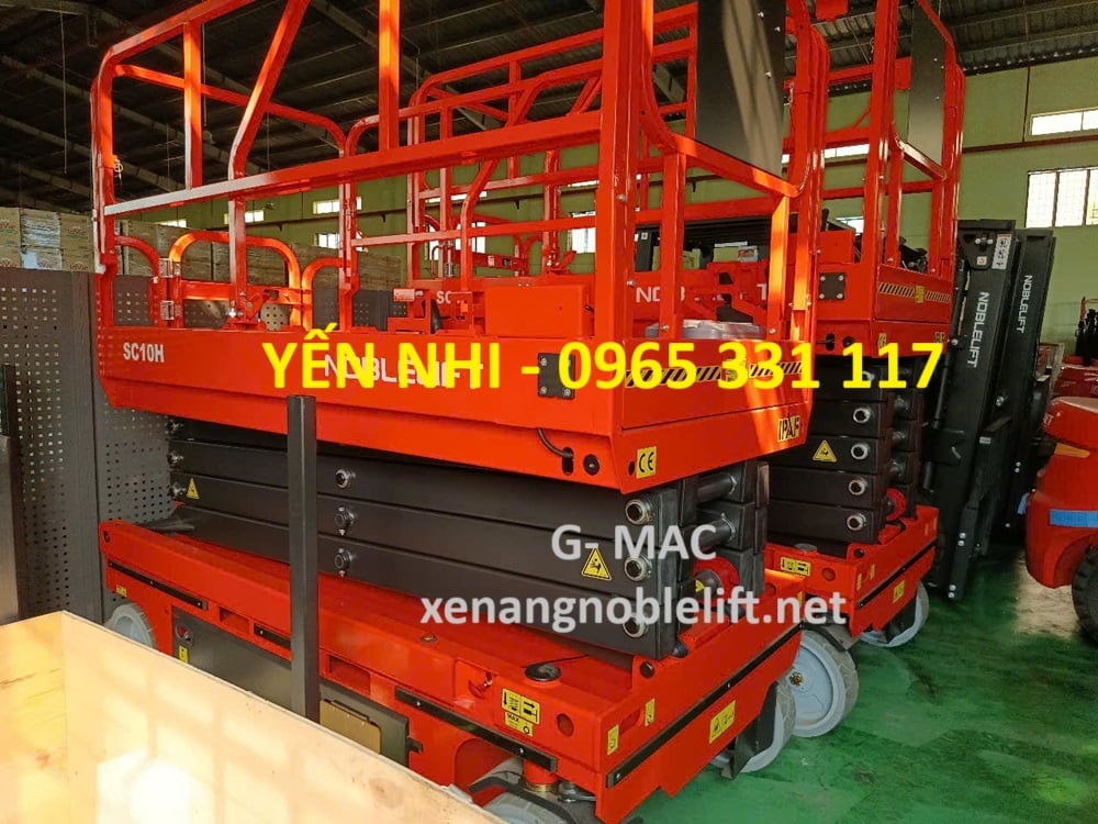 Thang nâng người bằng điện Noblelift (scissor lift) là thiết bị nâng hạ dùng để đưa người và dụng cụ làm việc lên cao một cách an toàn và hiệu quả. Đây là dòng thiết bị thuộc nhóm thang nâng người, được thiết kế với cơ chế nâng theo phương thẳng đứng nhờ vào hệ thống khung chữ X (giống hình cắt kéo). Cấu trúc này giúp thiết bị hoạt động ổn định và chịu tải lớn hơn so với nhiều loại thang nâng khác.