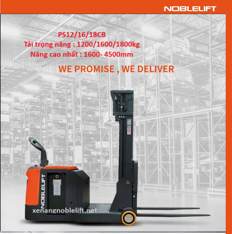 Xe nâng điện cao đối trọng Noblelift PS12/16/18CB là lựa chọn lý tưởng cho các kho hàng có nhu cầu nâng hạ hàng hóa ở độ cao lớn, sử dụng cả pallet 1 mặt và 2 mặt, đặc biệt phù hợp với các kho có lối đi hẹp và yêu cầu hiệu suất làm việc cao.