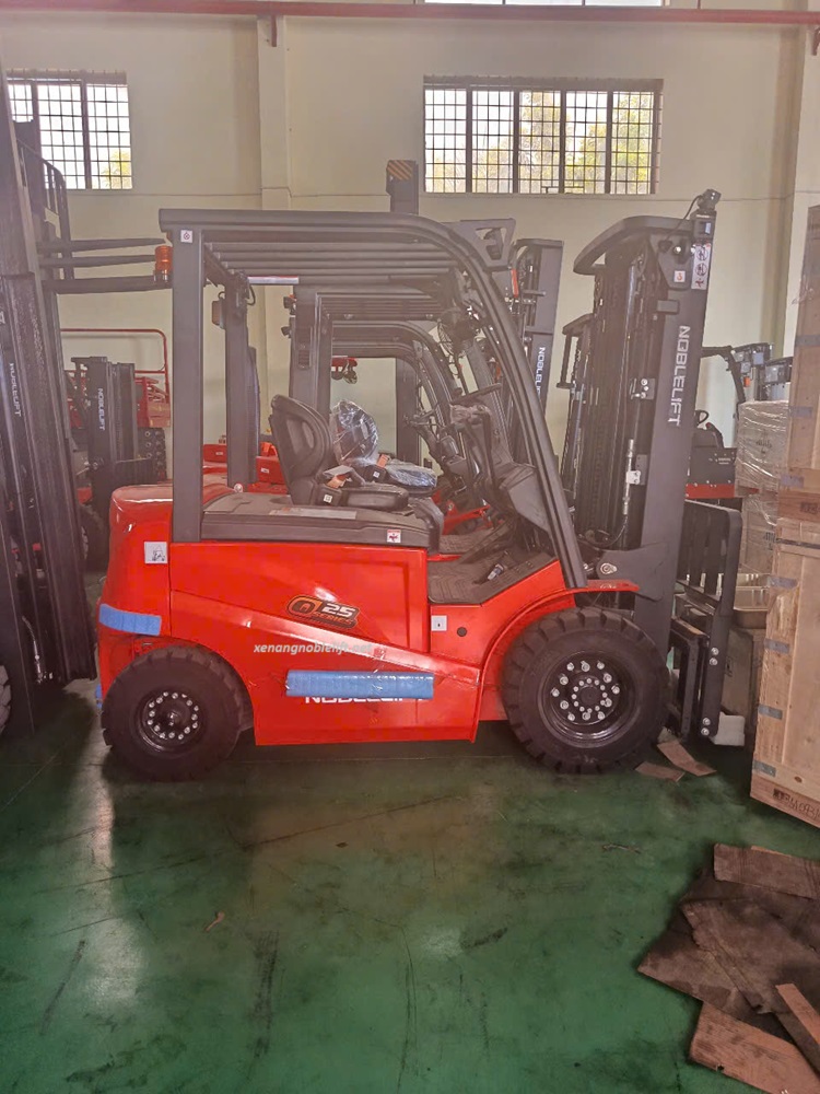 Xe nâng điện ngồi lái FE4P25Q 2500kg Noblelift với tải trọng 2.5 tấn là lựa chọn lý tưởng cho các doanh nghiệp cần vận chuyển hàng hóa nặng trong kho bãi. xe nâng điện ngồi lái 3 tấn Noblelift tiết kiệm chi phí kết hợp giữa xe nâng đốt trong truyền thống và xe nâng điện chạy bằng pin lithium-iron, có đặc điểm là không gian lái xe rộng rãi và vận hành thoải mái.