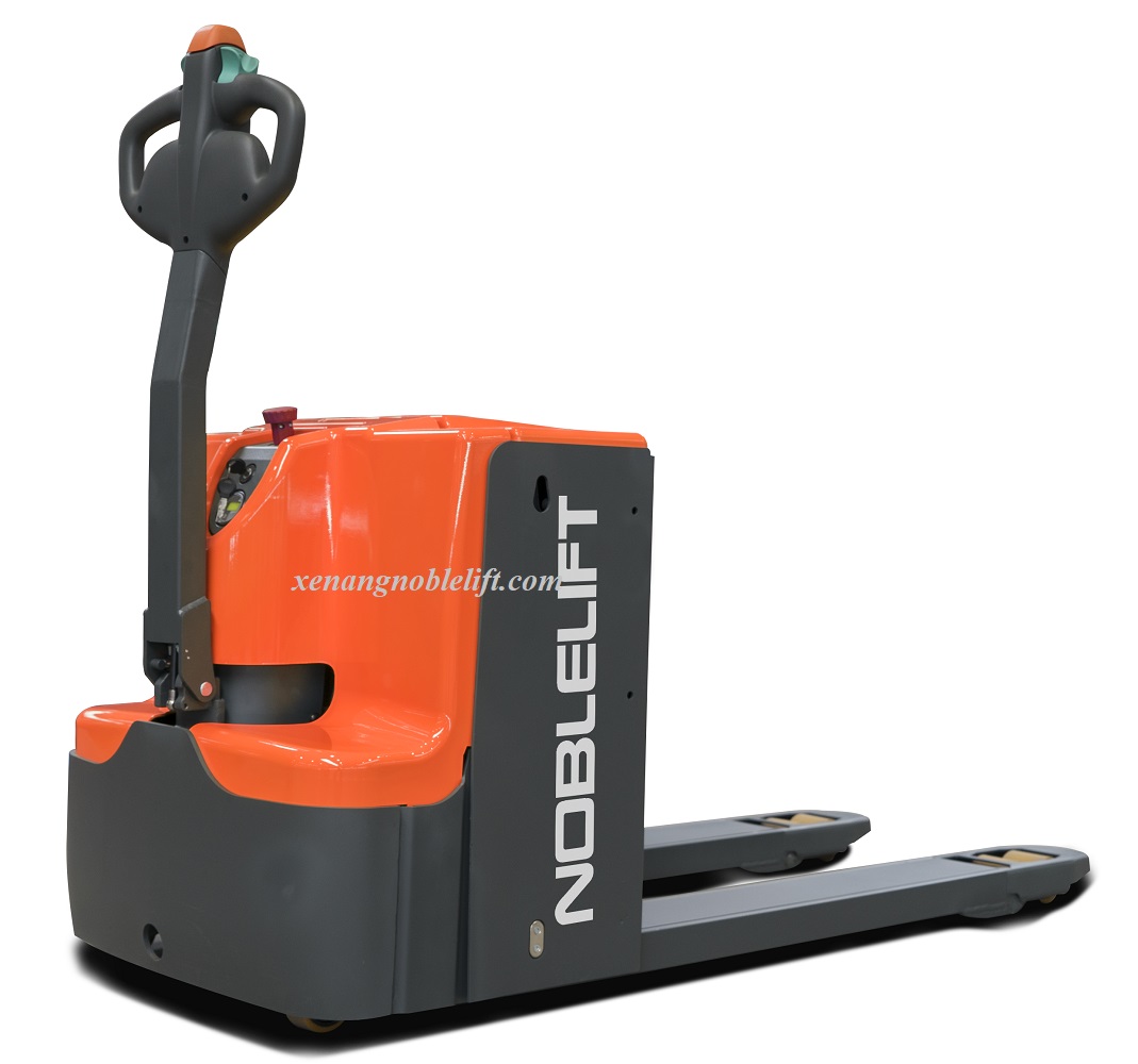 Xe nâng tay điện Noblelift sở hữu thiết kế gọn gàng, chắc chắn, phù hợp với các kho hàng, nhà xưởng có lối đi hẹp. Tay điều khiển tích hợp đầy đủ chức năng: tiến, lùi, nâng, hạ, còi – giúp người dùng dễ dàng thao tác.
