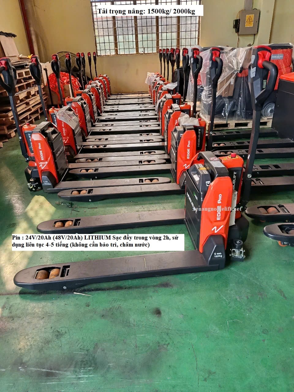 Xe nâng tay điện thấp Noblelift Tiết kiệm sức lao động không cần kéo đẩy bằng tay như xe nâng cơ.Tăng hiệu suất làm việc Nâng hạ và di chuyển hàng hóa nhanh chóng. An toàn hơn Hệ thống phanh và điều khiển giúp giảm nguy cơ tai nạn. Thân thiện với môi trường không phát thải khí độc, phù hợp sử dụng trong nhà kho kín chi phí vận hành thấp chỉ cần sạc điện thay vì đổ nhiên liệu.